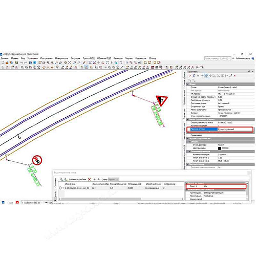 При расстановке дорожных знаков реализованы настройки для получения различных конфигураций знаков и их отображения на плане: