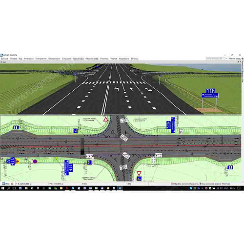 Для проектирования ОДД эффективнее всего использовать готовое проектное решение из КРЕДО ДОРОГИ без каких-либо конвертаций. В этом случае одновременно с созданием плана выполняется отрисовка линейной разметки по осевой линии и полосам покрытия дороги с учетом съездов, автобусных остановок, ПСП и разделительных полос.