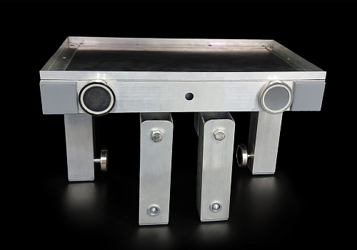 * Масса удерживаемого оборудования носит рекомендательный характер и зависит от многих факторов (толщина и магнитные свойства металла объекта контроля, окраска и нанесенные покрытия и прочее). Пользователь сам принимает решение об использовании устройства для фиксации того или иного устройства в конкретных обстоятельствах и условиях. Чем толще металлическое основание тем сильнее примагничивается стол и тем сложнее его отсоединить от основания, поэтому в таких случаях пользователь может использовать какие-либо прокладки (вставки) на магнит для ослабления магнитного поля. Столик может быть изготовлен с другими габаритами и конструкционными изменениями согласно ТЗ заказчика. |